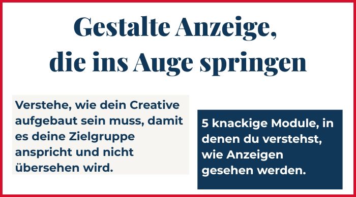 Außerdem wirst du nach diesem Kurs zig inhaltliche Ideen für deine Anzeigencreatives haben und deine Zielgruppe bewusster ansprechen können.
